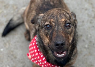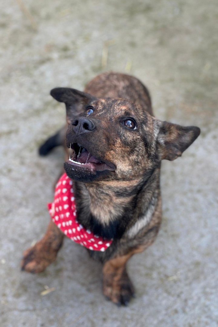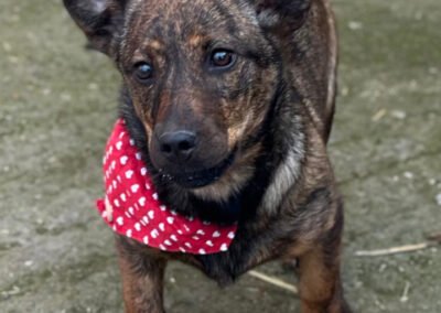 Bea zeigt sich als ausgesprochen verschmuste, verspielte, freundliche und neugierige junge Hündin. Sie genießt die Nähe zum Menschen sehr, sucht gerne den Kontakt und lässt sich mit großer Freude streicheln und verwöhnen. Gleichzeitig steckt sie voller Lebensfreude und Entdeckergeist. Sie erkundet aufmerksam ihre kleine Tierheim Umgebung, spielt begeistert mit ihren Artgenossen und zeigt sich offen gegenüber neuen Eindrücken. Dabei überzeugt sie mit ihrem fröhlichen Wesen und ihrer liebevollen Art, die jeden schnell für sich gewinnt. Mit anderen Hunden versteht sich Bea sehr gut. Sie zeigt sich sozial, verspielt und aufgeschlossen im Umgang mit ihnen. Wie sie sich gegenüber Katzen verhält, wissen wir derzeit noch nicht, testen dies aber gerne bei Interesse. Wie jeder junge Hund steht auch Bea noch ganz am Anfang ihres Lebensweges. Dinge wie das entspannte Laufen an der Leine, Stubenreinheit sowie die Grundlagen des Hunde-1×1 muss sie noch lernen. Mit Geduld, liebevoller Konsequenz und Freude am gemeinsamen Training wird sie sich jedoch schnell weiterentwickeln und zu einer treuen und verlässlichen Begleiterin heranwachsen.