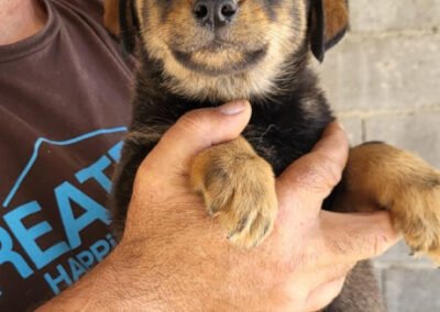 Unsere Tierschützer wurden auf eine Hündin aufmerksam, die sich mit ihren Welpen in der Nähe einer Schule aufhielt. Geduldig arbeiteten sie mehrere Tage daran, das Vertrauen der tapferen Hundemama zu gewinnen – und schließlich gelang es ihnen, sie samt Nachwuchs in Sicherheit zu bringen. Aufgrund starker Regenfälle trug die Mutter ihre Welpen unermüdlich umher, stets auf der Suche nach einem sicheren Unterschlupf. Von den ursprünglich elf Welpen waren jedoch nur noch neun bei ihr – zwei hatte sie leider bereits verstoßen. Doch das Schicksal meinte es gut mit den verbliebenen Welpen: Die kleine Hundefamilie wurde liebevoll aufgenommen, versorgt und umsorgt. Mittlerweile sind alle bereit für den nächsten großen Schritt – die Suche nach einem eigenen Zuhause!