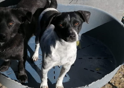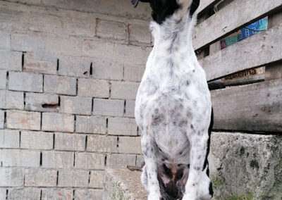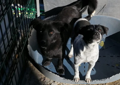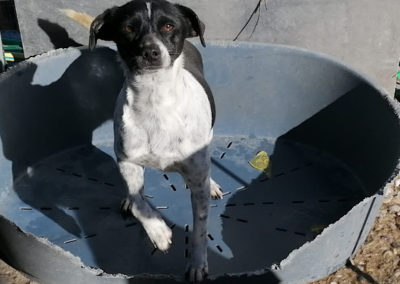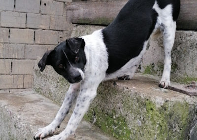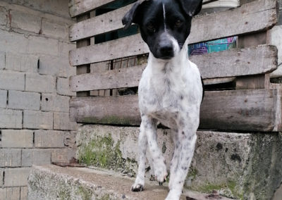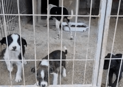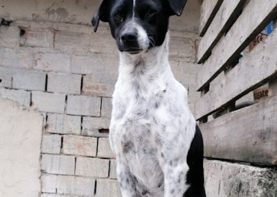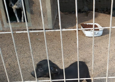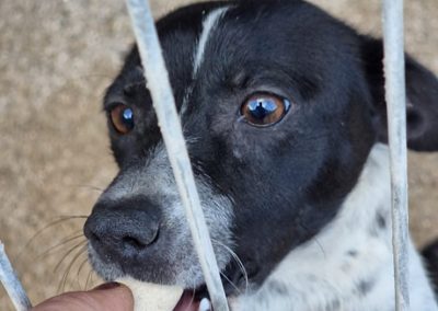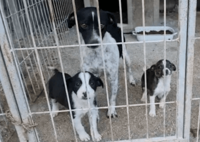 Micky wurde gemeinsam mit ihren drei Welpen vor den Toren unseres Asyls ausgesetzt. Sie selbst war an einer Kette befestigt, die an einen Müllcontainer gebunden war. Ihre Welpen hatte derjenige, der sie dort zurückließ, in eine kleine Hundehütte gesperrt und diese zusätzlich mit Brettern zugenagelt, damit die Kleinen nicht herauskommen konnten. Doch Micky ließ das nicht zu: Sie befreite ihre drei Schützlinge, die treu bei ihr blieben. Am nächsten Morgen wurden sie schließlich von unseren Tierschützern entdeckt und in Sicherheit gebracht.