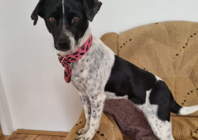 - Besonderheiten: Chihiro ist eine aufgeweckte, sehr freundliche und verschmuste Hündin, die Menschen, Artgenossen und Katzen offen begegnet. Aufgrund einer minimalen, kastrationsbedingten Inkontinenz bekommt sie 1-2x wöchentlich pflanzliche Tropfen, mit denen sie vollständig symptomfrei ist.