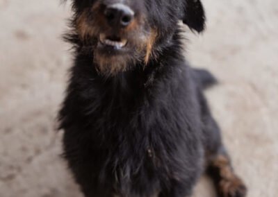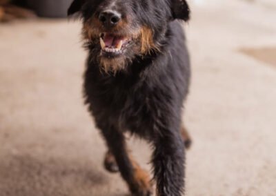 Dina ist eine bezaubernde Deutsche Jagdterrier-Hündin, die mit ihrer anhänglichen und verschmusten Art sofort jedes Herz gewinnt. Sie liebt es, gestreichelt zu werden, sucht die Nähe ihrer Menschen und genießt jedes liebevolle Wort. Gleichzeitig zeigt sie die typischen Eigenschaften ihrer Rasse: Sie ist neugierig, energiegeladen und besitzt einen ausgeprägten Jagdinstinkt. Schnüffeln, Erkunden und kleine Abenteuer gehören für sie einfach dazu. Um glücklich zu sein, braucht Dina daher geistige und körperliche Auslastung sowie Menschen, die Freude daran haben, mit ihr aktiv durchs Leben zu gehen. Mit anderen Hunden versteht sie sich sehr gut. Wie sie auf Katzen reagiert, wissen wir noch nicht, können dies bei Interesse jedoch jederzeit testen. Ein kleiner Schönheitsmakel – ihre kurze Rute – macht Dina nur noch einzigartiger und tut ihrer Lebensfreude keinerlei Abbruch. Das Hunde-1×1 möchte die junge Hündin gemeinsam mit ihren zukünftigen Menschen noch lernen. Stubenreinheit, Leinenführigkeit und all die kleinen Dinge des Alltags werden für Dina kein Problem sein, wenn sie geduldig und liebevoll begleitet wird. Sie wünscht sich eine aktive Familie, die mit ihr die Welt entdecken möchte und ihr jeden Tag zeigt, wie bunt und schön ein Hundeleben sein kann.