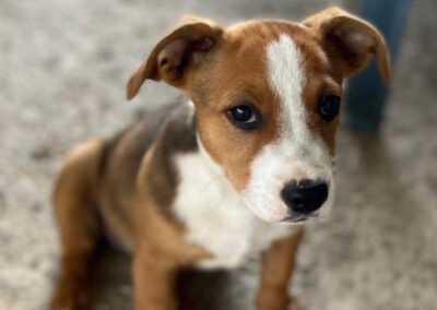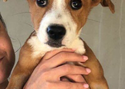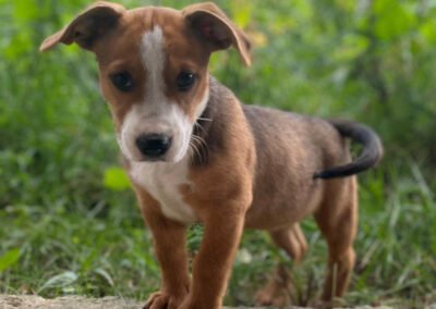 Dotty ist eine unglaublich aufgeschlossene und liebenswerte Hündin, die den Kontakt zu Menschen über alles liebt. Sie genießt jede Streicheleinheit und freut sich riesig, wenn man sich mit ihr beschäftigt. Altersgemäß ist sie voller Energie, neugierig und bereit, die Welt zu entdecken. Mit ihren Artgenossen versteht sie sich wunderbar und spielt ausgiebig mit ihnen. Doch es ist wichtig zu wissen, dass ein junger Hund wie Dotty auch viel Zeit und Geduld braucht. Stubenreinheit, an der Leine laufen und die Grundlagen des Hunde-1×1 kennt sie noch nicht – all das muss sie mit Liebe und Geduld lernen. Aber mit der richtigen Fürsorge wird Dotty schnell zu einem treuen Begleiter für ihre neue Familie.