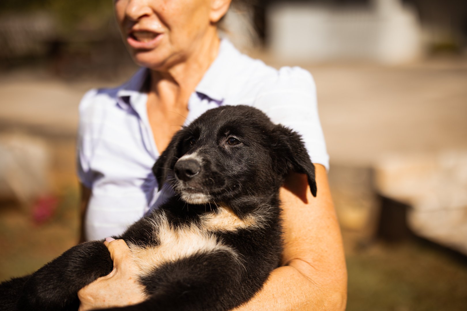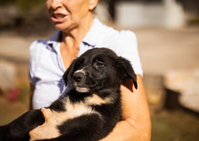 Die Mutter von Eliana hatte ein schweres Schicksal – sie wurde von einem Ehepaar von der Straße aufgelesen, nachdem sie zuvor wohl misshandelt, geschlagen und getreten worden war. Das Ehepaar ließ die Hündin leider nicht kastrieren und so fiel ihre Trächtigkeit erst spät auf. Ein Abbruch war nicht mehr möglich. So brachte sie in Sicherheit acht Welpen zur Welt. Einer von ihnen ist Eliana: eine fröhliche, neugierige junge Hündin, die nun bereit ist, in ihr eigenes Leben zu starten. Sie ist bereits grundimmunisiert und wartet sehnsüchtig auf liebevolle Menschen, die ihr Herz für sie öffnen.