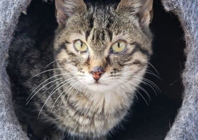 Unsere bezaubernde Emma hat die Herzen der Tierschützer im Sturm für sich gewonnen. Mit ihrem sanften Wesen, ihrer neugierigen Art und ihrer großen Freude am Spielen ist sie eine echte kleine Persönlichkeit zum Verlieben. Sie sucht gerne die Nähe zu ihren Menschen, genießt jede Form von Aufmerksamkeit und kann von liebevollen Streicheleinheiten kaum genug bekommen. Emma bringt zudem eine ordentliche Portion Energie mit. Sobald sich etwas bewegt oder ein Spielzeug ihre Aufmerksamkeit weckt, ist sie voller Begeisterung dabei. Mit ihr wird es im Alltag nie eintönig – sie sorgt für Schwung, gute Laune und viele lebendige Momente. Für Emma wünschen wir uns ein liebevolles und geschütztes Zuhause, in dem sie als Wohnungskatze glücklich sein darf. Ein gut gesicherter Balkon oder Garten wäre für sie das i-Tüpfelchen: frische Luft, spannende Beobachtungen und gleichzeitig maximale Sicherheit. Sollte Freigang eine Option sein, dann ausschließlich in einer sehr ruhigen, ländlichen Umgebung, da uns ihr Wohl besonders am Herzen liegt. Über einen tierischen Gefährten würde sich Emma sehr freuen. Ob sie gemeinsam mit einer weiteren Katze umzieht oder als Zweitkatze zu einem sozialen Artgenossen kommt – beides passt gut zu ihr. Mit Hunden hatte Emma bereits erste Erfahrungen, allerdings ist ihr das enge Zusammenleben bisher noch nicht vertraut.