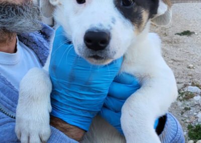 Der kleine Flocki erblickte innerhalb unserer Tierheimmauern das Licht der Welt. Seine Mama Jacky (Džeki) wurde von anderen Tierschützern übernommen, ohne dass jemand bemerkte, dass sie bereits hochträchtig war. Nur wenige Tage, nachdem Jacky in unser Tierheim einzog, brachte sie acht kleine Welpen zur Welt – darunter auch Flocki. Die kleine Familie wurde liebevoll versorgt und durfte gemeinsam aufwachsen. Inzwischen ist Flocki alt genug, um auf eigenen Pfoten durchs Leben zu gehen und sein Für-Immer-Zuhause zu finden.