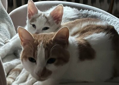 Gia & Lio wurden gemeinsam vor dem Haus unserer Tierschützerin aufgegabelt und hatten vor Kurzem das große Glück, zu einer Pflegefamilie nach 22083 Hamburg zu reisen, wo sie nun auf eine liebevolle Für-Immer-Familie warten. Die beiden sind ein Herz und eine Seele, kuscheln und spielen für ihr Leben gern zusammen – deshalb werden sie nur gemeinsam vermittelt. Sie sind verträglich mit anderen Katzen, kleineren Hunden und kinderlieb, solange die Kinder ihre Grenzen respektieren. Außerdem können sie bereits problemlos ein paar Stunden alleine bleiben. Gia ist eine sanfte, feinfühlige Seele, die anfangs ein wenig Zeit braucht, um aufzutauen. Menschen, die ihr Raum lassen und behutsam auf sie zugehen, zeigt sie jedoch schnell ihre liebevolle Seite. Dann genießt sie ruhige Kuschelstunden, wird neugierig und lässt sich auch zu kleinen Spielmomenten hinreißen. Lio ist dagegen ein echter Wirbelwind und steckt voller Lebensfreude – ganz das typische Kitten. Er ist verspielt, energiegeladen und geht ohne jede Scheu auf Neues und unbekannte Situationen zu. Berührungsängste kennt er nicht und fühlt sich schnell überall pudelwohl. Gemeinsam lieben beide es, hoch hinauszuklettern. Catwalks, erhöhte Liegeflächen oder Kletterelemente wären für sie ideal, um sich auszutoben und ihre Umgebung aus sicherer Höhe zu beobachten. Ein ausbruchsicherer Balkon/ Garten wäre für die beiden das i-Tüpfelchen.