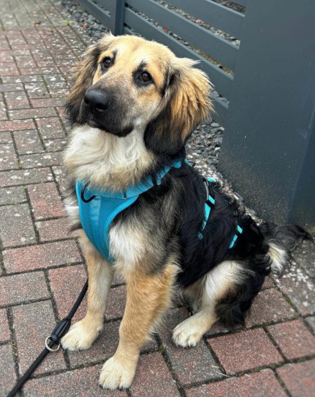 Vor kurzem hatte Julio das große Glück, zu seiner Pflegestelle nach 22559 Hamburg zu reisen und hat sich dort in Rekordzeit eingelebt. Mit seiner neugierigen und charmanten Art erkundet er fröhlich seine Umgebung und entdeckt ständig neue Dinge, die ihm gefallen. Julio ist bereits von Beginn an stubenrein gewesen, läuft toll an der Leine – wenn er nicht gerade durch etwas Spannendes abgelenkt wird – und hat riesigen Spaß daran, draußen herumzutoben und neue Freunde zu finden. Auch mit anderen Hunden kommt Julio gut zurecht und genießt es, mit ihnen zu spielen. Zuhause ist er sehr menschenbezogen und liebt es zu kuscheln. Er ist ein lebensfroher und neugieriger Hund, der in der Wohnung aber auch schon sehr gut zur Ruhe kommt und ein entspannter Begleiter ist. Das Alleinbleiben und Autofahren müssen noch Schritt für Schritt mit ihm geübt werden. Ein ruhiges Zuhause mit einem eingezäunten Garten und souveränem Ersthund wäre ein schöner Ort für ihn, um herumzutoben und weiterhin in seinem Tempo anzukommen – ist aber selbstverständlich kein Muss. Viel wichtiger ist, dass Julio eine liebevolle Bezugsperson findet, die ihm mit Offenheit und Zuneigung begegnet und der bewusst ist, dass Julio das Hunde-1×1 noch Stück für Stück lernen muss. Hundeerfahrung ist hier von Vorteil; Julio würde mit seiner fröhlichen und lernwilligen Art jedoch auch bei ambitionierten Hundeanfängern glücklich werden.