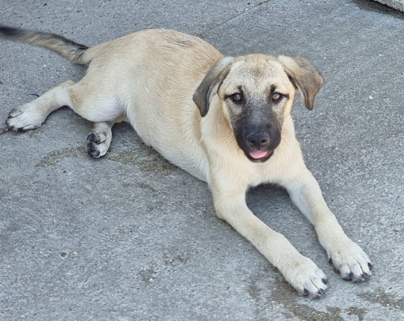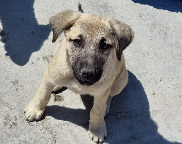 Den Menschen, bei denen sie vorher untergekommen war, wurde sie vermutlich zu lästig und da sie keine Verwendung für einen Mischlingswelpen hatten, wurde Kore mitsamt ihren Geschwistern an der Straße die zum Asyl führt ausgesetzt. Mit Hilfe des Mannes, der die Bande dort entdeckte und sofort unsere Tierschützer alarmierte, gelang es schnell, sie in die Sicherheit des Asyls zu locken.