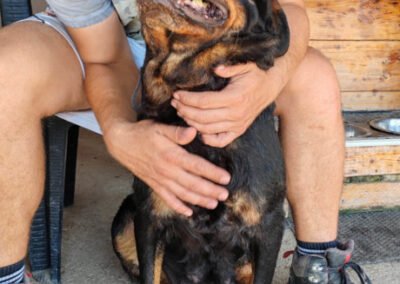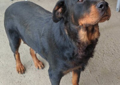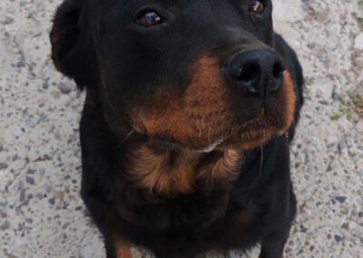 Lala ist eine unglaublich verschmuste und liebevolle Hündin, die es liebt, sich gemütlich hinzukuscheln und zu entspannen. Sie versteht sich sehr gut mit anderen Hunden und wir können bei Bedarf testen, wie sie mit Katzen klarkommt. Lala hat leider Herzwürmer, die bereits mit der Slow Kill Methode behandelt werden, zudem hört sie bereits etwas schlechter. Leider wurde ihre Rute abgeschnitten – höchstwahrscheinlich ein Überbleibsel ihres Lebens als Zuchthündin. Wir gehen stark davon aus, dass sie, bevor sie auf der Straße gelandet ist, dazu missbraucht wurde, regelmäßig Welpen zu gebären. Als Rottweiler zeigt Lala typische Charakterzüge ihrer Rasse: loyal, anhänglich und intelligent. Unsere hübsche Lala sehnt sich nach einem Zuhause, in dem man ihr mit Verständnis, Geduld und ganz viel Liebe begegnet und es ihr nicht übel nimmt, wenn sie etwas Zeit benötigt, um sich an das gemeinsame Leben zu gewöhnen.