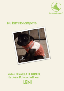 Informiere dich jetzt und werde Pate. Hier findest du weitere Informationen zu den unterschiedlichen Patenschaften (monatliche Futter-/Medizinpatenschaft sowie einmalige Namens- und Kastrationspatenschaft)