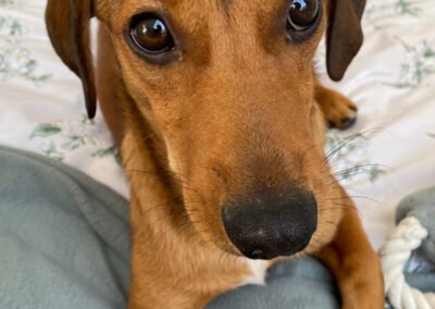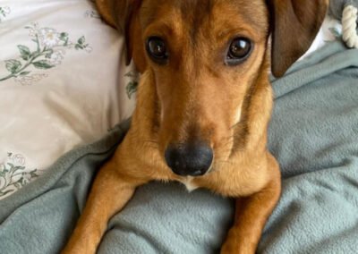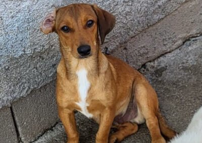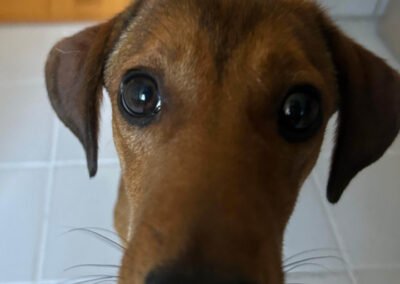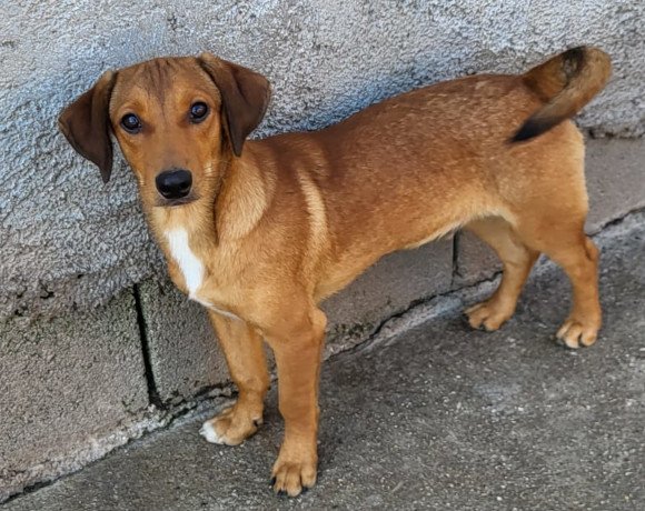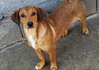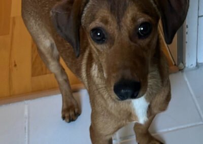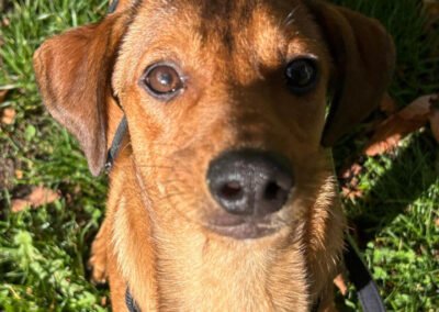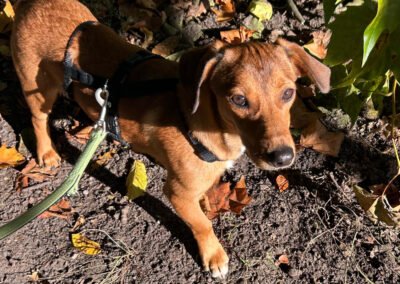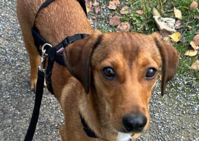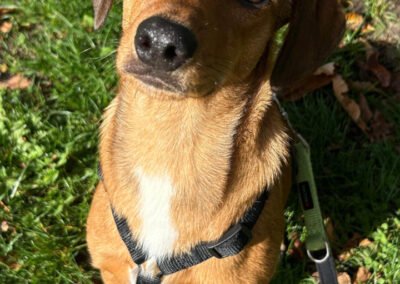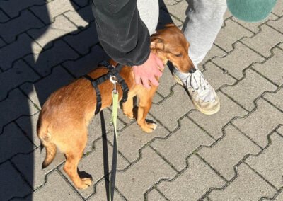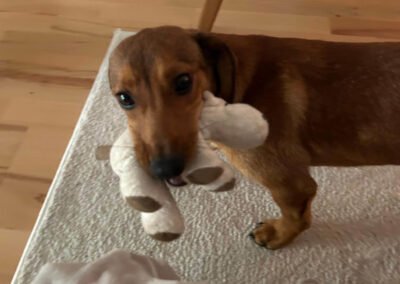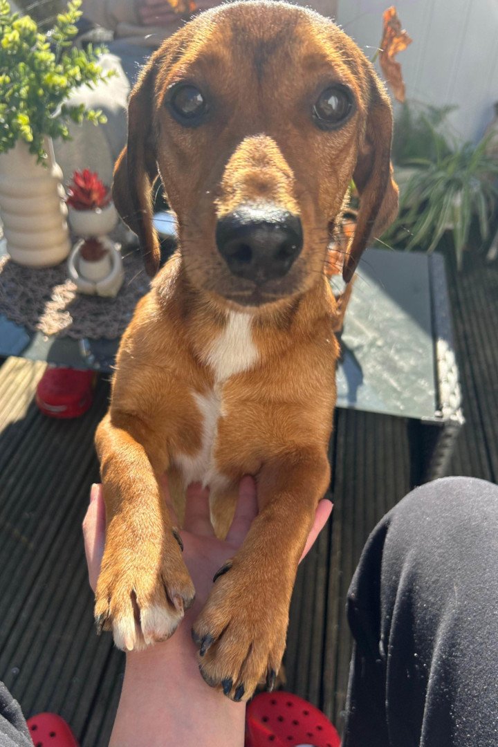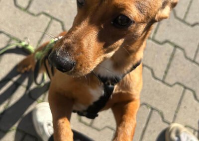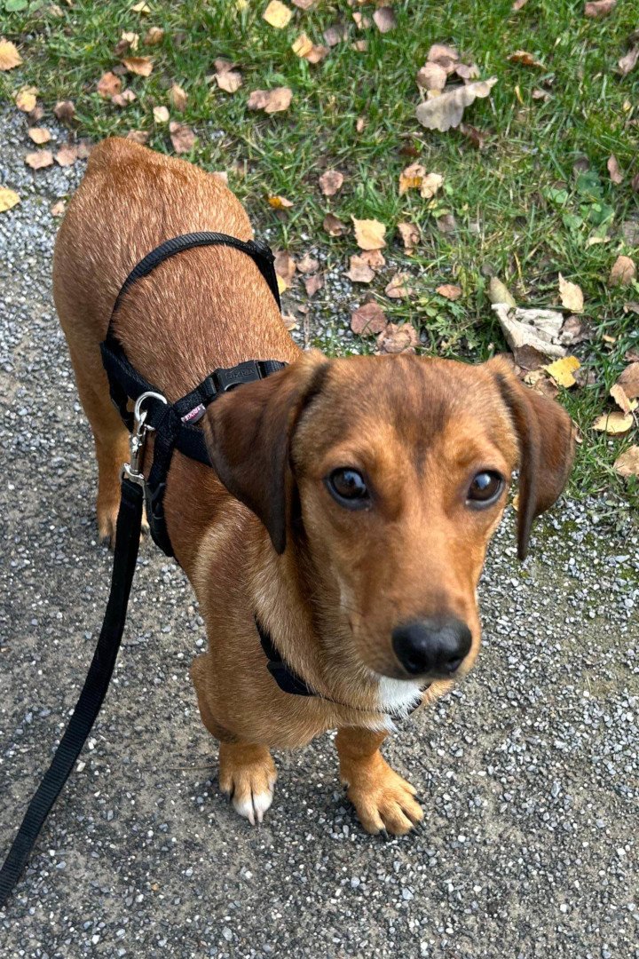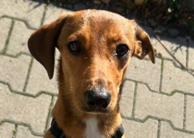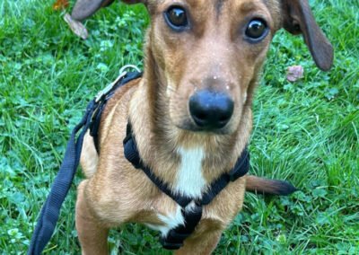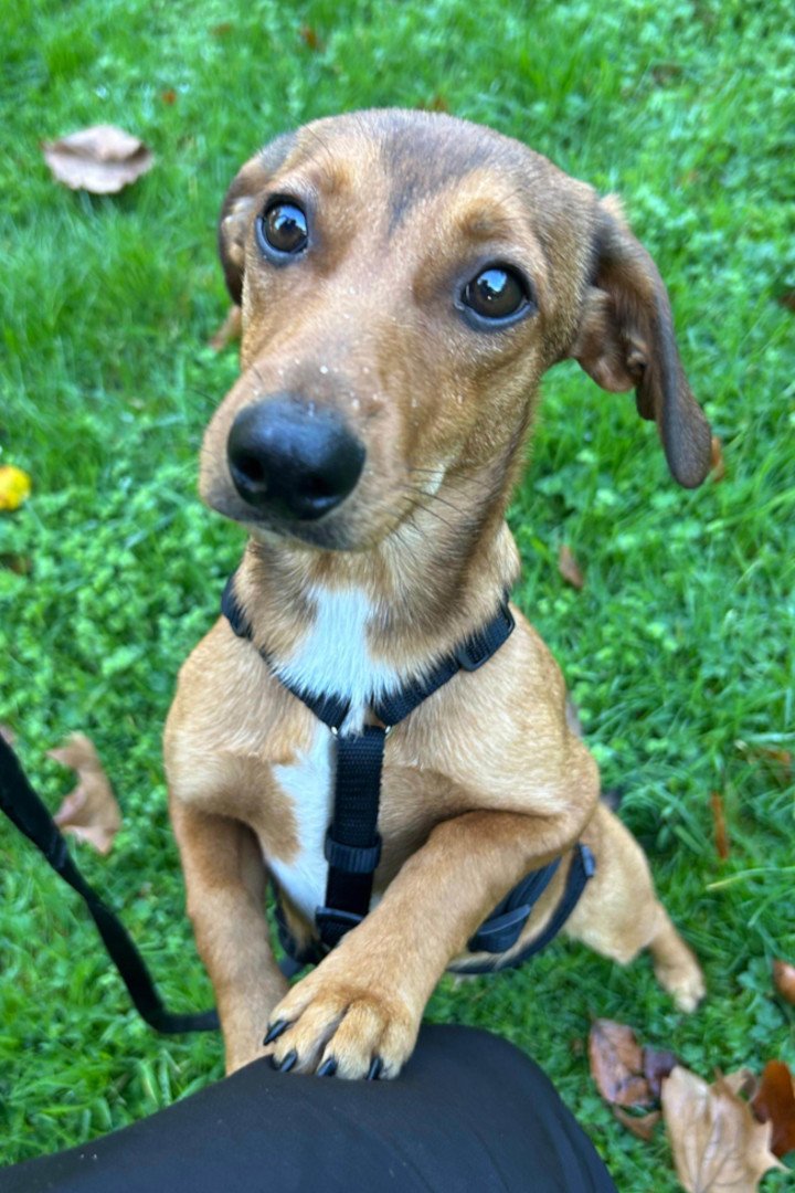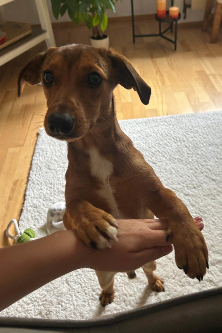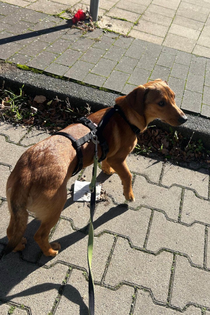 Vor Kurzem durfte der kleine Dackel-Mix Luca auf eine Pflegestelle nach Deutschland reisen, wo er bereits immer mehr im Alltag ankommt. Luca ist ein absoluter Schatz, der nicht genug vom Spielen und Durch-die-Wohnung-Toben kriegen kann. Aber auch Kraulis und die Zuneigung seiner Bezugspersonen genießt er sehr und kommt in ihrer Nähe bereits wunderbar zur Ruhe. Auch fremde Menschen und andere Hunde, die er noch nie zuvor gesehen hat, begrüßt der kleine Sonnenschein mit fröhlichem Schwanzwedeln. Er liebt es, neue Dinge zu entdecken und gewöhnt sich draußen aktuell Schritt für Schritt an unsere laute, schnelle Welt, was ihm zwischendurch manchmal noch etwas suspekt ist. Durch Lucas Dackel-Gene zeigt er draußen einen rassebedingten Jagdtrieb, aus dem er sich aber gut abrufen lässt. Auch in der Wohnung blüht Luca auf, flitzt und tobt und ist sehr fröhlich. Alterstypisch hat er selbstverständlich noch allerlei Flausen im Kopf, versteht ein „Nein“ aber ohne Diskussion. Bei seiner Pflegestelle wird er bereits an alltägliche Dinge wie das Treppensteigen, das Laufen an der Leine und ans Autofahren gewöhnt, was immer besser funktioniert. Er ist stubenrein und beherrscht durch seine lernwillige Art schon erste Grundkommandos und möchte einfach nur gefallen. Luca ist ein kleiner Rohdiamant, der sich darauf freut, bald seine Menschen kennenzulernen und sein Für-Immer-Zuhause zu finden. Über einen kleinen, ausbruchsicheren Garten und einen Fellkumpel würde sich der verträgliche Rüde sicherlich sehr freuen – Voraussetzung ist dies natürlich nicht.