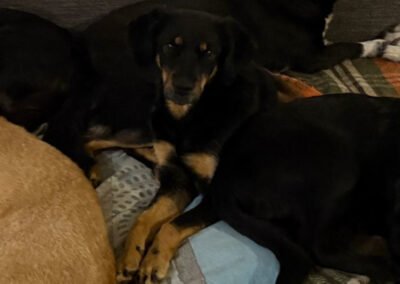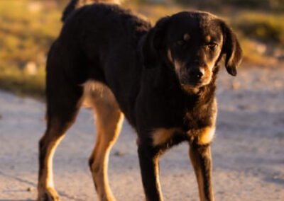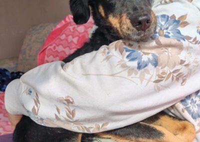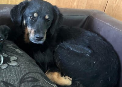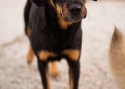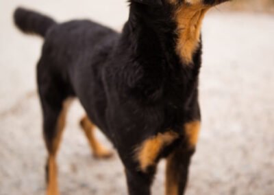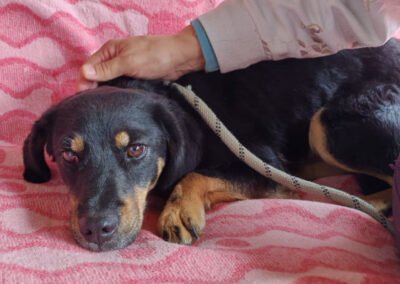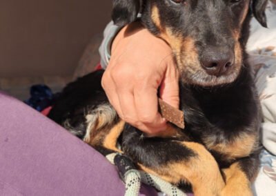 Malena wurde auf einem abgelegenen Hügel gefunden – allein, abgemagert und zutiefst verängstigt. In einer kleinen Hütte hatte sie ihre Welpen zur Welt gebracht und es brach einem das Herz, sie in diesem Zustand zu sehen. Als sie schließlich in Sicherheit gebracht werden konnte, war sie so scheu, dass sich unsere Tierschützer ihr kaum nähern durften. Sie zog sich in die Ecke eines Zimmers zurück und wollte am liebsten unsichtbar sein. Doch mit viel Geduld, Liebe und Zeit hat Malena gelernt, dass nicht alle Menschen etwas Schlechtes bedeuten – heute schläft sie jeden Tag gemütlich auf dem Bett, lässt sich streicheln und kommt voller Freude angelaufen, wenn es Leckerlis gibt.