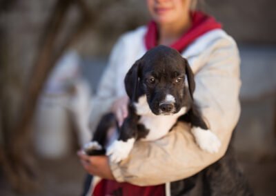 Miles und seine sieben Geschwister hatten keinen einfachen Start ins Leben. Die kleine Rasselbande wurde vor den Toren unseres Tierheims gefunden – eng aneinandergeschmiegt im Gebüsch, ganz auf sich allein gestellt. Zum Glück wurden unsere Tierschützer schnell auf sie aufmerksam und konnten die Welpen liebevoll in Sicherheit bringen. Dort wurden sie umsorgt, geimpft und aufgepäppelt, und nun ist Miles bereit, sein eigenes kleines Abenteuer zu beginnen – in einem liebevollen Zuhause, das ihm Geborgenheit und Zuneigung schenkt.