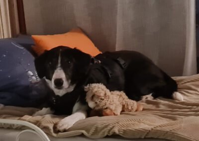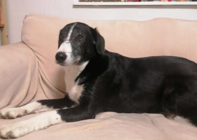 Die liebe Mona hatte vor Kurzem das große Glück, zu ihrer Pflegefamilie nach Deutschland zu reisen – und zeigt sich dort schon jetzt von ihrer allerbesten Seite. Obwohl sie eine furchtbare Geschichte mit sich bringt – dehydriert, angefahren und mit starkem Milbenbefall von der Straße aufgegabelt –, ist sie eine extrem verschmuste, aufmerksame und herzensgute Hündin, die noch immer voller Lebensfreude steckt. Ob beim Kuscheln auf der Couch oder im Kontakt mit anderen Hunden – Mona strahlt dabei einfach pure Freude aus. Sie ist bereits stubenrein, läuft entspannt an der Leine und auch Autofahren meistert sie problemlos. In neuen oder unsicheren Situationen hilft ihr besonders der Rückhalt ihrer Bezugspersonen, die ihr Sicherheit geben und ihr Selbstvertrauen stärken. Durch den Autounfall hat Mona ein unrundes Gangbild. Ein aktuelles Röntgenbild hat jedoch ergeben, dass sowohl die Wirbelsäule, die Hüfte und die Knie in Ordnung sind als auch der rechte Oberschenkel, der durch den Unfall etwas verkürzt ist, keinen Behandlungsbedarf darstellt. Langfristig könnte eine physiotherapeutische Behandlung aber eine sinnvolle und unterstützende Maßnahme darstellen.