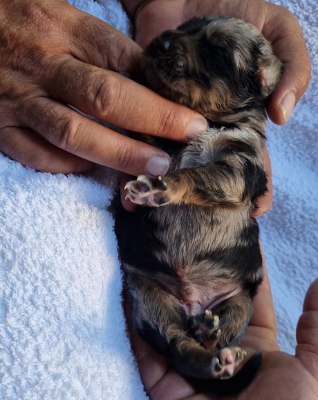 Der kleine Hundebub Murphy wurde mit seinen Schwestern Karla und Mollie von einem Mann von einer Brücke in den Fluss geschmissen. Glücklicherweise hat ein Angler die Tat ihres Herrchens beobachtet und sie aus dem Fluss retten können. Hinterher stellte sich heraus, dass die Bande aus einer Dackel Zucht stammte, die Mutter verstorben sei und man dann nicht mehr wusste, wohin mit den Welpen. Sie in ein Tierheim zu bringen oder wenigstens auf der Straße auszusetzen war anscheinend keine Option.. Glücklicherweise wurden die Zwerge rechtzeitig gerettet. Eine der Schwestern hat die ersten kritischen Tage leider dennoch nicht überstanden und ist an den Folgen ihrer Vergangenheit verstorben. Doch Murphy und Karla leben seitdem bei unseren Tierschützern daheim und sind bereit ihre Pflegestelle zu verlassen und in ihrer ganz eigenen Familie aufzuwachsen.