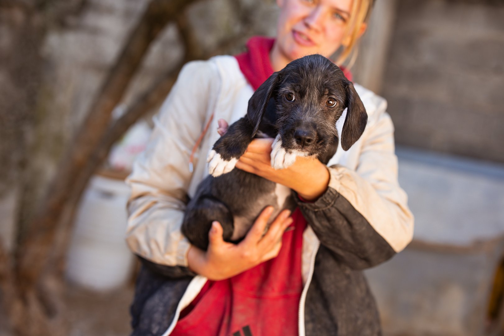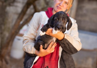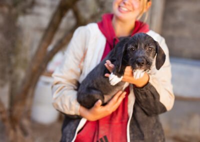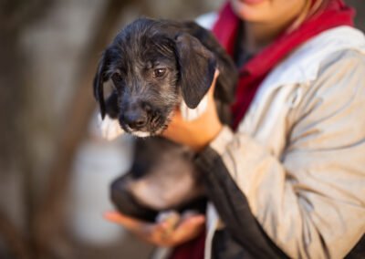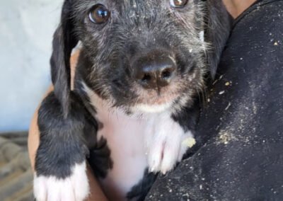 Olivia und ihre sieben Geschwister hatten keinen einfachen Start ins Leben. Die kleine Rasselbande wurde vor den Toren unseres Tierheims gefunden – eng aneinandergeschmiegt im Gebüsch, ganz auf sich allein gestellt. Zum Glück wurden unsere Tierschützer schnell auf sie aufmerksam und konnten die Welpen liebevoll in Sicherheit bringen. Dort wurden sie umsorgt, geimpft und aufgepäppelt, und nun ist Olivia bereit, ihr eigenes kleines Abenteuer zu beginnen – in einem liebevollen Zuhause, das ihr Geborgenheit und Zuneigung schenkt.
