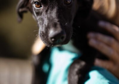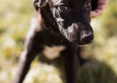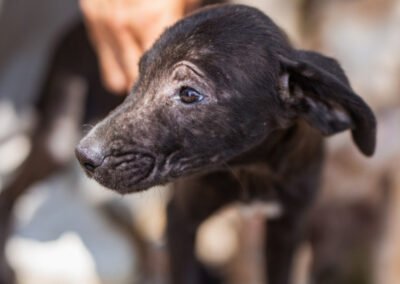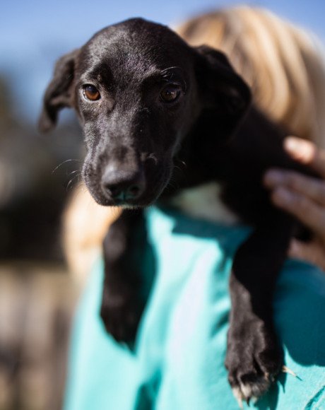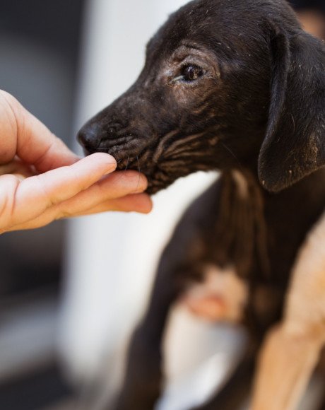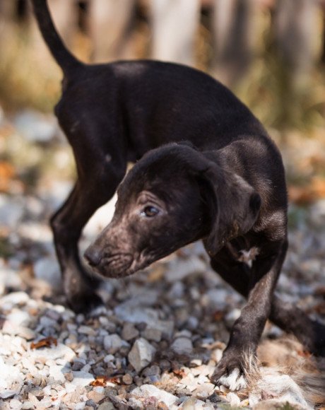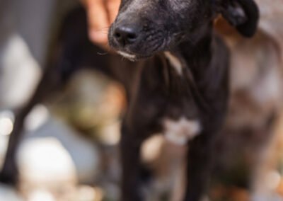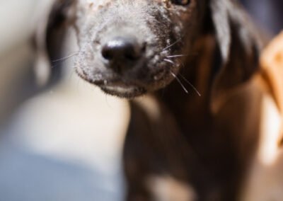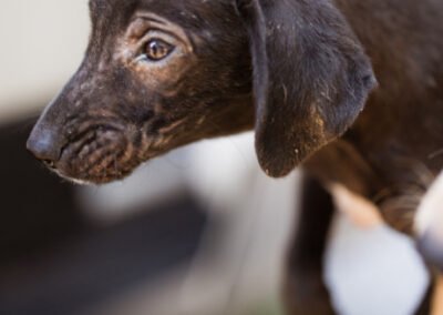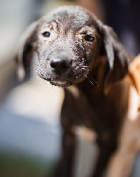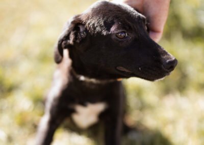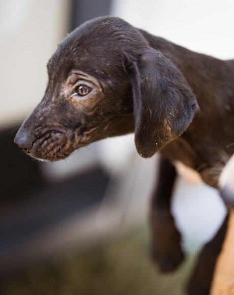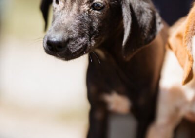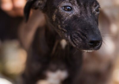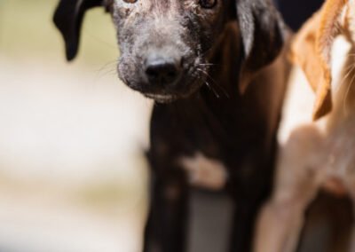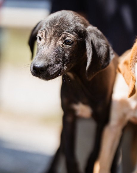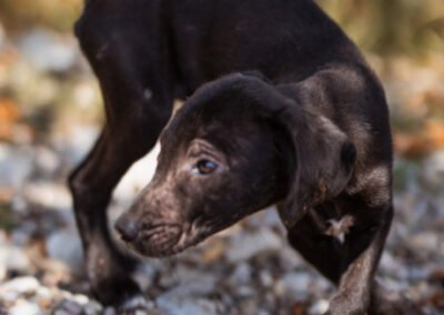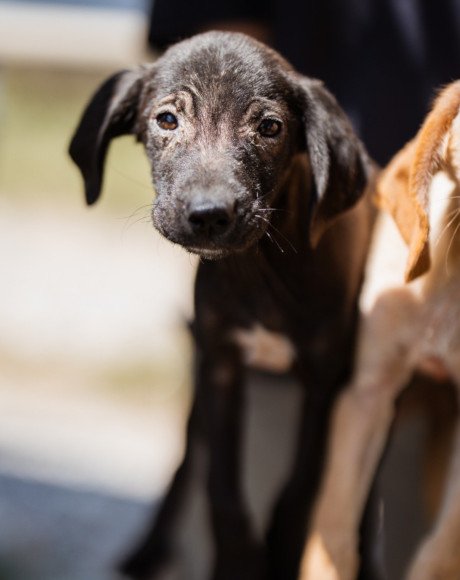Die kleine Paula wurde gemeinsam mit ihrem Bruder Hachiko und zwei weiteren Geschwistern vor einem Supermarkt ausgesetzt. Zwei Welpen wurden von den Bewohnern des Dorfes adoptiert – leider verstarb einer an Staupe, wie unsere Tierschützerin später erfuhr – ihre Besitzer sahen keine Notwendigkeit darin, ihn impfen zu lassen. Paula und Hachiko verschwanden zunächst ebenfalls, wurden wohl im Dorf von einem Haus zum nächsten herumgereicht. Niemand nahm sich ihrer an, sondern verscheuchte sie wieder. Nach einigen Tagen tauchten sie erneut in der Nähe des Supermarktes auf, und die Anwohner riefen diesmal die Hundefänger. Dies war an einem Freitag; da dieser nicht vor Montag vorbeischauen wollte, sperrte einer der Anwohner sie in einem Rohr unter einer Brücke ein – ohne Wasser, ohne Futter! Kein Wunder, dass sie blutigen Durchfall bekamen, extreme Hautprobleme hatten und völlig entkräftet waren, als unsere Tierschützerin sie in Sicherheit brachte. Dank der liebevollen Pflege haben sich die beiden tapferen Hundeseelen wunderbar erholt. Inzwischen sind sie über den Berg und bereit, ihr großes Glück zu finden – ein Zuhause, in dem sie endlich ankommen dürfen.