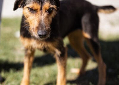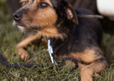 Nach dieser dramatischen Rettung schien Ricarda zunächst in Sicherheit. Doch kurz darauf eröffnete direkt hinter dem Grundstück, auf dem sie vorübergehend untergebracht war, ein Grillrestaurant. Das laute Treiben dort führte dazu, dass die Hunde regelmäßig anschlugen und das wiederum störte die neuen Nachbarn. Mehrmals wurde das Ordnungsamt gerufen, und jedes Mal bestand die Gefahr, dass Ricarda und ihre Welpen erneut von den zuständigen Mitarbeitern in die Tötung gebracht würden – ein zweites Mal hätten sie die Hundefänger vermutlich nicht überlebt. Anfangs waren die Tiere völlig verängstigt und kannten nichts vom Leben in Geborgenheit. Spielen, Vertrauen, Nähe – all das war ihnen fremd. Doch durch Geduld, Fürsorge und liebevolle Betreuung unserer Tierschützerin, bei der die kleine Familie nun endlich in Sicherheit lebt, lernten sie langsam, dass Menschen auch Gutes bedeuten können. Ricarda wurde medizinisch versorgt, geimpft, gechippt und kastriert – und durfte endlich aufatmen. Heute hat sich Ricarda wunderbar erholt. Sie ist ruhig, freundlich und dankbar, ein Wesen voller Sanftmut. Ihr größter Wunsch: endlich ein Zuhause, in dem sie geliebt wird und für immer ankommen darf.
