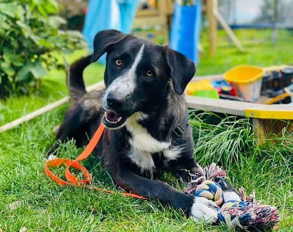Ruby ist eine aktive und verspielte Hündin, die aber auch gut zur Ruhe kommt.