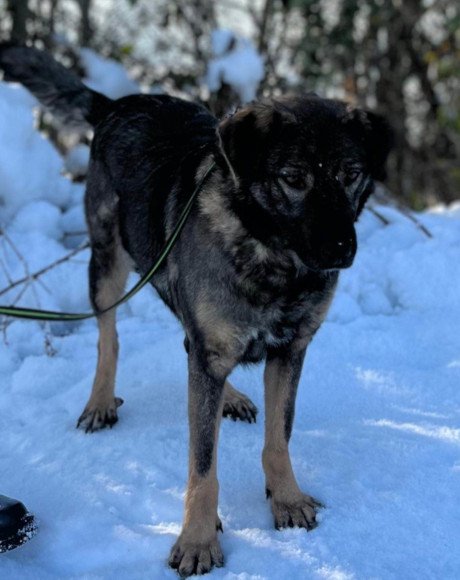 Die liebe Hündin Saga hatte vor Kurzem das große Glück, auf eine Pflegestelle nach Deutschland reisen zu dürfen – und zeigt sich dort als absoluter Schatz! Saga ist eine ruhige, ausgeglichene und sehr menschenbezogene Hündin. Am liebsten ist sie in der Nähe ihrer Bezugsperson und legt sich entspannt überall dazu. Kuscheln lässt sie sich sehr gern – auch von Besuchern, sobald sie diese einmal kennengelernt hat. Im Haus zeigt sie sich bereits stubenrein und bleibt auch schon kurze Zeit (ca. 30 Minuten) problemlos allein. Spaziergänge liebt Saga sehr. Sie läuft locker und entspannt an der Leine, ist gut ansprechbar und reagiert souverän auf ihre Umwelt – seien es andere Hunde, Radfahrer, Autos oder Kühe. Bei Begegnungen mit Artgenossen zeigt sie sich freundlich. Kleine kläffende Hunde ignoriert sie einfach. Über Brücken läuft sie ohne Probleme und genießt die Ausflüge mit ihren Hundekumpels. Im Garten zeigt sie, dass sie wachsam ist – sie bellt bei unbekannten Geräuschen oder Besuchern am Zaun, beruhigt sich aber schnell wieder. Auch ins Haus kommende Gäste werden zunächst gemeldet, dann aber freundlich begrüßt und anschließend in Ruhe gelassen. Inzwischen findet Saga auch das Autofahren okay – sie steigt alleine ein und legt sich brav hin. Manchmal kann Saga etwas stürmisch sein und muss noch lernen, dass ihr Mensch nicht spielerisch angestupst wird – mit etwas Geduld, klarer Führung und einem Kuscheltier als Alternative funktioniert das aber immer besser. Spielen mit Bällen oder Spielzeug interessiert sie weniger – Leckerlis hingegen liebt sie über alles! Das macht das Training mit ihr besonders angenehm, denn sie ist sehr klug, aufmerksam und lernt schnell. Erste Grundkommandos wie „Sitz“, „Bleib“ oder Abrufen an der Schleppleine klappen in der Pflegestelle bereits richtig gut.