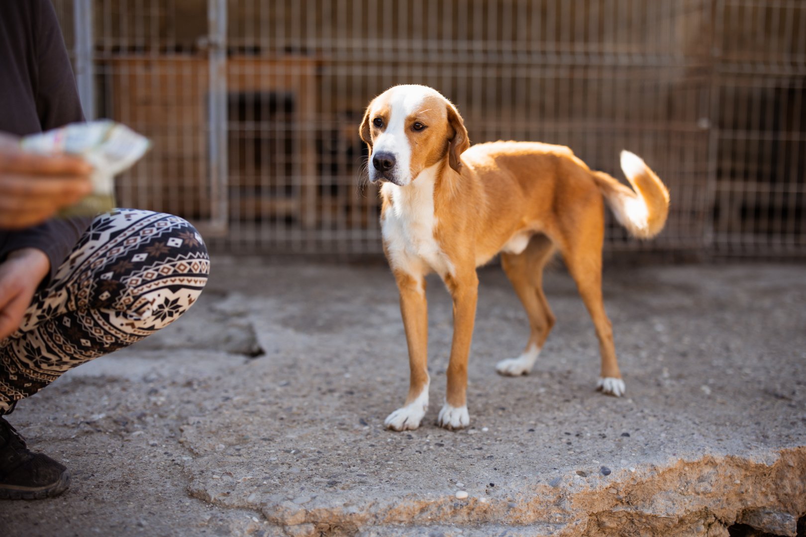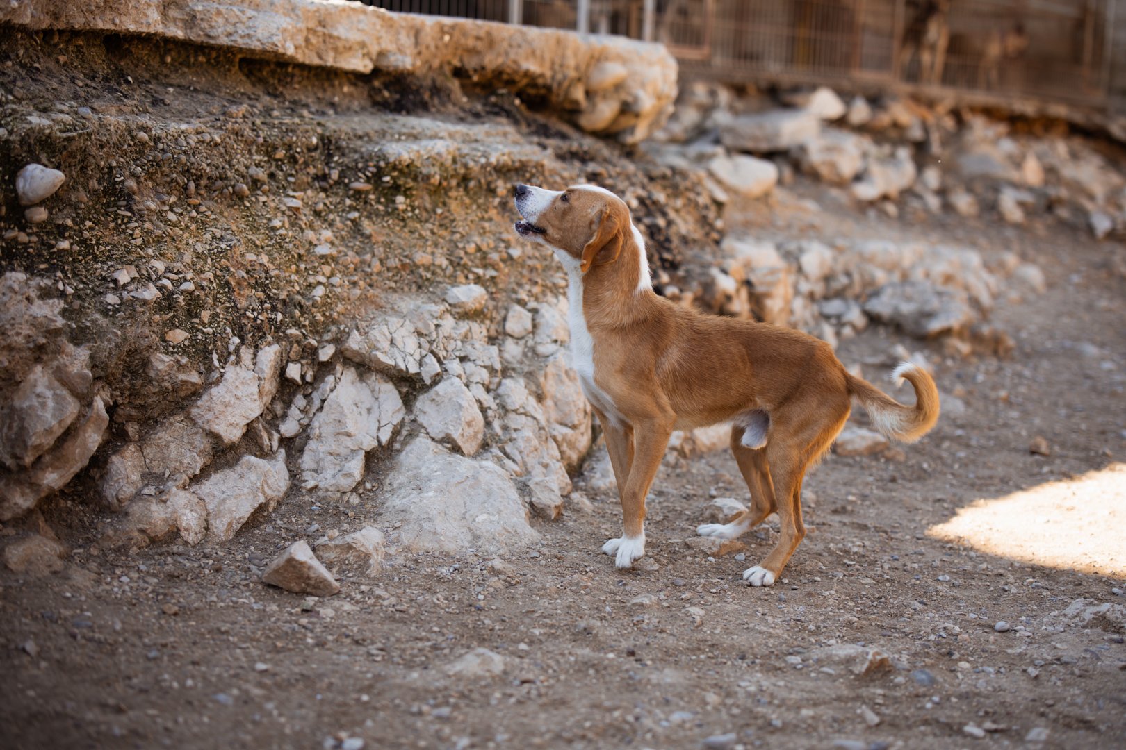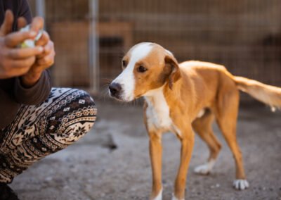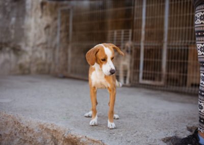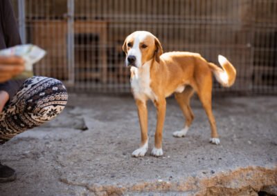 Der charmante braun-weiße Mischlingsrüde Sami ist auf der Suche nach einem liebevollen Zuhause. Unsere Tierschützer entdeckten den ausgesetzten Rüden allein an einer Straße, auf den ersten Blick war ihnen direkt klar, wie sehr er leiden musste – sein Körper war überall von Zecken befallen, zudem war er klapperdürr. Glücklicherweise konnte Sami schnell ins Tierheim gebracht werden, wo er umfassend versorgt und von den lästigen Parasiten befreit wurde.