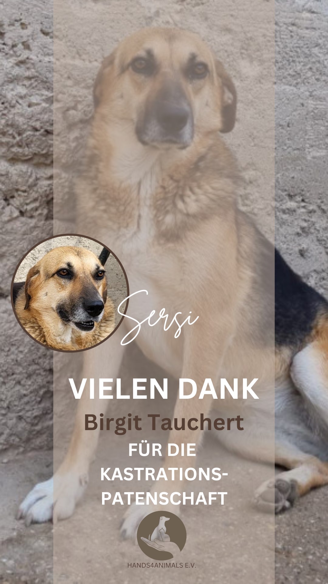 Sersi ist eine liebe, freundliche und ruhige Hündin, die mit ihrem sanften Wesen jedes Herz berührt. Unsere Tierschützerin ruft sie liebevoll „Wo bist du denn“ – darauf hört sie sofort und kommt fröhlich angelaufen. Sie genießt dann auch die Zuwendung und lässt sich gern knuddeln. Allerdings zieht sich Sersi lieber etwas zurück, sobald mehrere Hunde dazu kommen – das Gedrängel und die Aufdringlichkeit der anderen sind ihr einfach zu viel. Im kleinen, ruhigen Rahmen fühlt sie sich deutlich wohler. Fremden Menschen gegenüber zeigt sich Sersi noch etwas schüchtern – kein Wunder, denn seit sie als kleiner Welpe gefunden wurde, kennt sie nur die tristen Mauern des Tierheims. Für eine sensible Hündin wie sie ist das kein einfacher Start ins Leben, und je länger sie dort ausharren muss, desto schwerer fällt ihr der Alltag. Umso mehr wünschen wir uns, dass Sersi endlich gesehen wird und die Chance bekommt, das Leben außerhalb des Tierheims kennenzulernen. Mit geduldigen, liebevollen Menschen an ihrer Seite, die ihr Sicherheit und Rückhalt geben. Sie braucht Menschen, die ihr Zeit lassen, ihr mit Ruhe begegnen und sie behutsam an neue Situationen heranführen. Ein souveräner Ersthund, an dem sie sich zu Beginn orientieren kann, wäre für sie sicher eine große Hilfe – solange er ihr den Raum lässt, den sie braucht. Wir wünschen uns für Sersi ein liebevolles, ruhiges Zuhause – idealerweise in ländlicher Umgebung, fernab vom Trubel der Stadt. Ein sicher eingezäunter Garten, in dem sie endlich das Gras unter ihren Pfoten spüren, nach Herzenslust schnuppern und einfach Hund sein darf, wäre ein wahrer Traum für sie. Auch eine erfahrene Pflegestelle, die ihr den Start ins neue Leben erleichtert, wäre ein wunderbares Sprungbrett. Ihr Verhalten gegenüber Katzen konnten wir bisher nicht testen, dies kann aber bei Interesse jederzeit erfolgen.