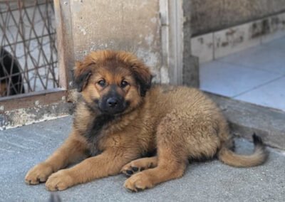 Unsere Tierschützer wurden auf eine Hündin aufmerksam, die sich mit ihren Welpen in der Nähe einer Schule aufhielt. Geduldig arbeiteten sie mehrere Tage daran, das Vertrauen der tapferen Hundemama zu gewinnen – und schließlich gelang es ihnen, sie samt Nachwuchs in Sicherheit zu bringen. Aufgrund starker Regenfälle trug die Mutter ihre Welpen unermüdlich umher, stets auf der Suche nach einem sicheren Unterschlupf. Von den ursprünglich elf Welpen waren jedoch nur noch neun bei ihr – zwei hatte sie leider bereits verstoßen. Doch das Schicksal meinte es gut mit den verbliebenen Welpen: Die kleine Hundefamilie wurde liebevoll aufgenommen, versorgt und umsorgt. Mittlerweile sind alle bereit für den nächsten großen Schritt – die Suche nach einem eigenen Zuhause!