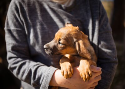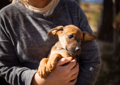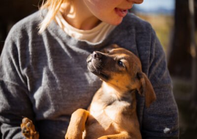 Die kleine Tilly erblickte innerhalb unserer Tierheimmauern das Licht der Welt. Ihre Mama Jacky (Džeki) wurde von anderen Tierschützern übernommen, ohne dass jemand bemerkte, dass sie bereits hochträchtig war. Nur wenige Tage, nachdem Jacky in unser Tierheim einzog, brachte sie acht kleine Welpen zur Welt – darunter auch Tilly. Die kleine Familie wurde liebevoll versorgt und durfte gemeinsam aufwachsen. Inzwischen ist Tilly alt genug, um auf eigenen Pfoten durchs Leben zu gehen und ihr Für-Immer-Zuhause zu finden.