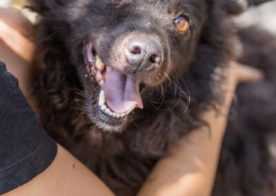Tim, ein kleiner Rüde mit großem Herz, hat eine ganz besondere Geschichte. Während eines Besuchs vor Ort wurde er von der Mutter unserer Tierschützerin angefüttert. Auch nachdem sie wieder abreiste, wartete er treu an der gleichen Stelle auf sie. Schließlich nahmen zwei Tierärzte, mit denen wir zusammenarbeiten, Tim zu sich. Anfangs war er skeptisch und unsicher, doch inzwischen hat er sich gut eingelebt und Vertrauen gefasst.