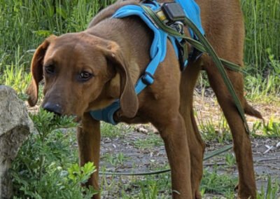 Tora ist vermutlich ein Mischling aus Labrador und Bracke, weshalb es wichtig ist, sich vorab mit den typischen Eigenschaften beider Rassen auseinanderzusetzen. Diese Hunde sind intelligent, arbeitsfreudig und besitzen sowohl einen ausgeprägten Spürsinn als auch eine enge Bindung zu ihren Menschen. Sie sind aktiv, lernwillig und brauchen sowohl körperliche als auch geistige Auslastung. Für Tora wünschen wir uns idealerweise ein Zuhause bei hundeerfahrenen Menschen oder ambitionierten Anfängern, die ihr genügend Bewegung, Training und Aufmerksamkeit bieten können. Ein Haus mit ausbruchsicherem Garten in ländlicher Umgebung wäre ideal. Zudem sollte sie regelmäßig durch Such- und Apportierspiele, Dummytraining oder andere Hundesportarten gefördert werden, um ihre Intelligenz und ihren Spürsinn sinnvoll zu nutzen. Eine konsequente, aber einfühlsame Erziehung ist dabei essenziell, um Tora glücklich und ausgeglichen zu halten.